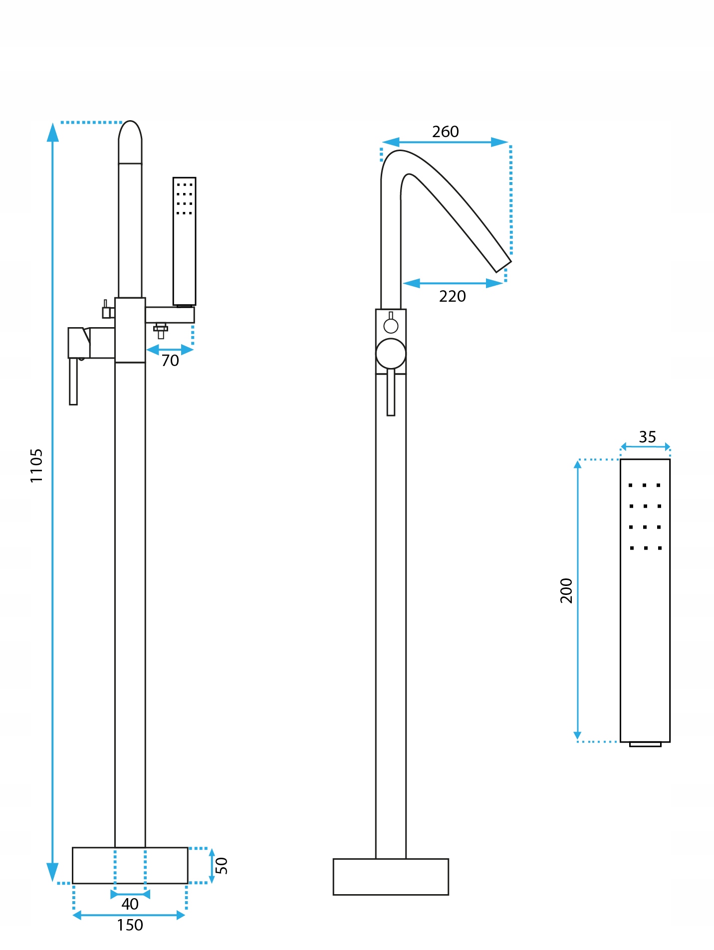 Bateria ARAS chrom wannowa podłogowa stojąca Rea
