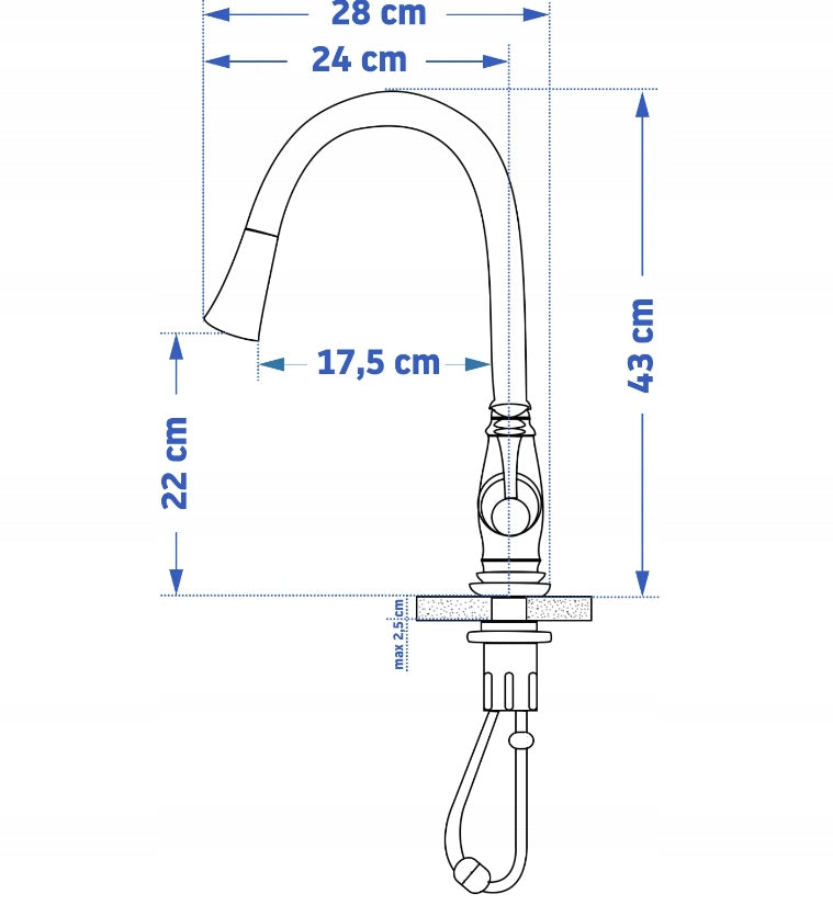 - Sposób montażu baterii: nablatowa, zlewozmywakowa