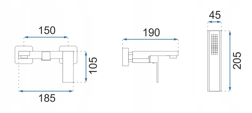 - Zawartość zestawu: bateria, wąż prysznicowy, słuchawka prysznicowa, mocowanie ścienne słuchawki
