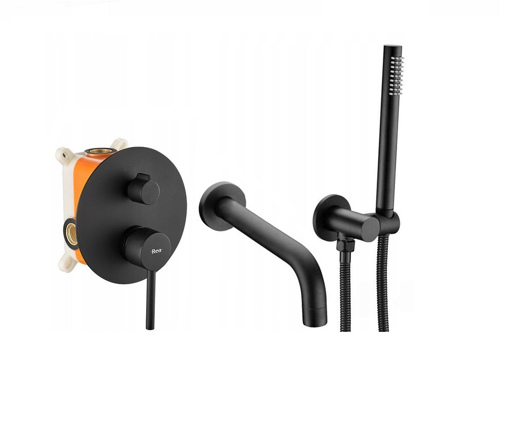 Bateria LUNGO wannowa podtynkowa czarna + box REA
