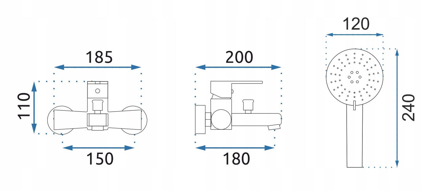 - Zawartość zestawu: wylewka, bateria, wąż prysznicowy, słuchawka prysznicowa, mocowanie ścienne słuchawki