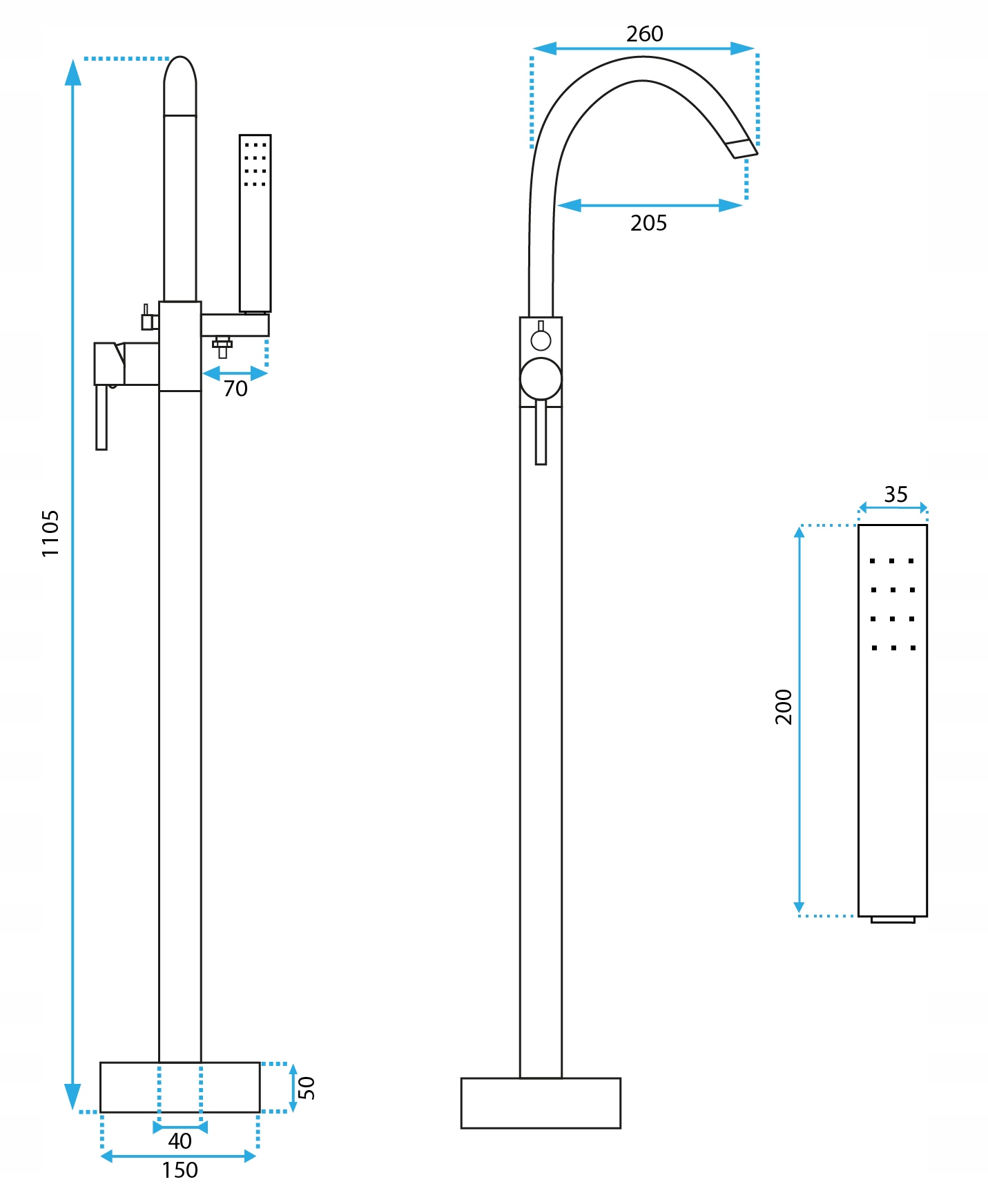 Bateria MONO złoty mat wannowa podłogowa stojąca Rea