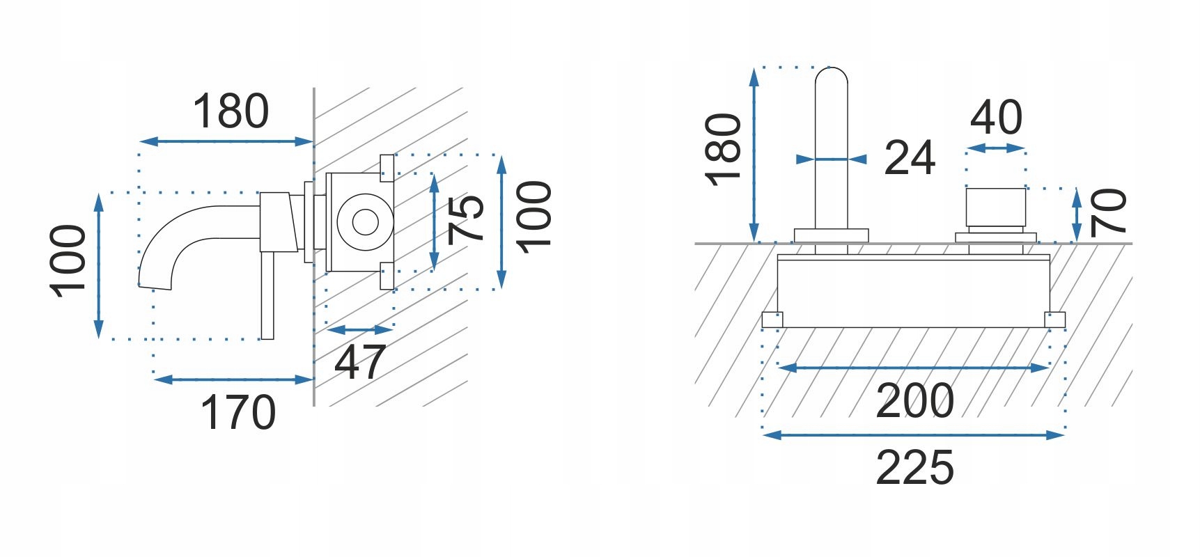 - Sposób montażu baterii: podtynkowa