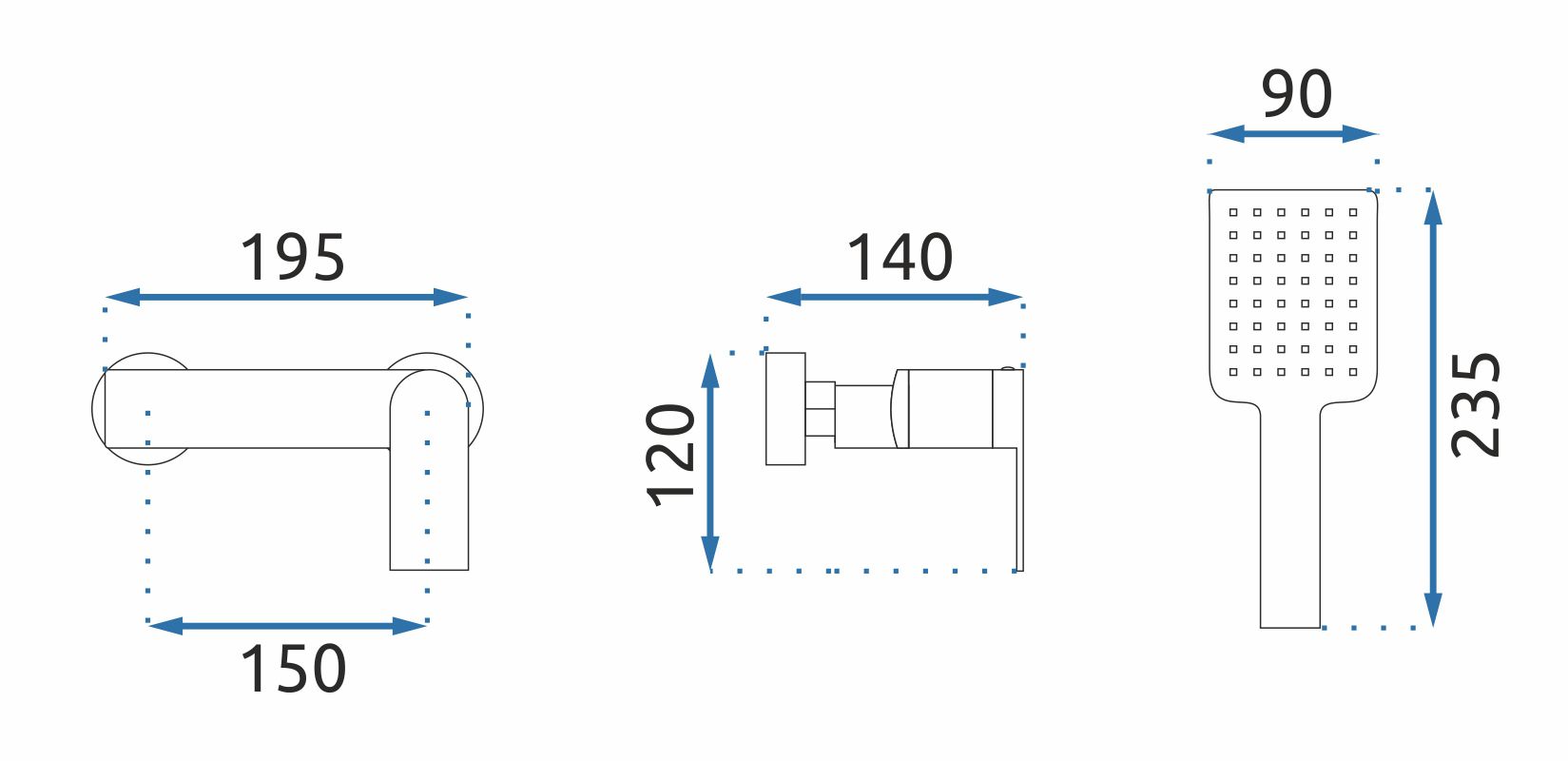 - Zawartość zestawu: bateria, wąż prysznicowy, słuchawka prysznicowa, mocowanie ścienne słuchawki