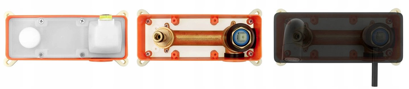 zapewnia wygodny i szybki montaż. Wykonany został z tworzywa sztucznego, oraz mosiężnych elementów wewnętrznych, co gwarantuje wysoką jakość i niezawodność. Element wyposażony został w część maskującą, zabezpieczającą wewnętrzne elementy podczas montażu, oraz poziomicę ułatwiającą prawidłowy i precyzyjny montaż. System umożliwia łatwy dostęp do wewnętrznych elementów baterii po zamontowaniu w celu konserwacji.