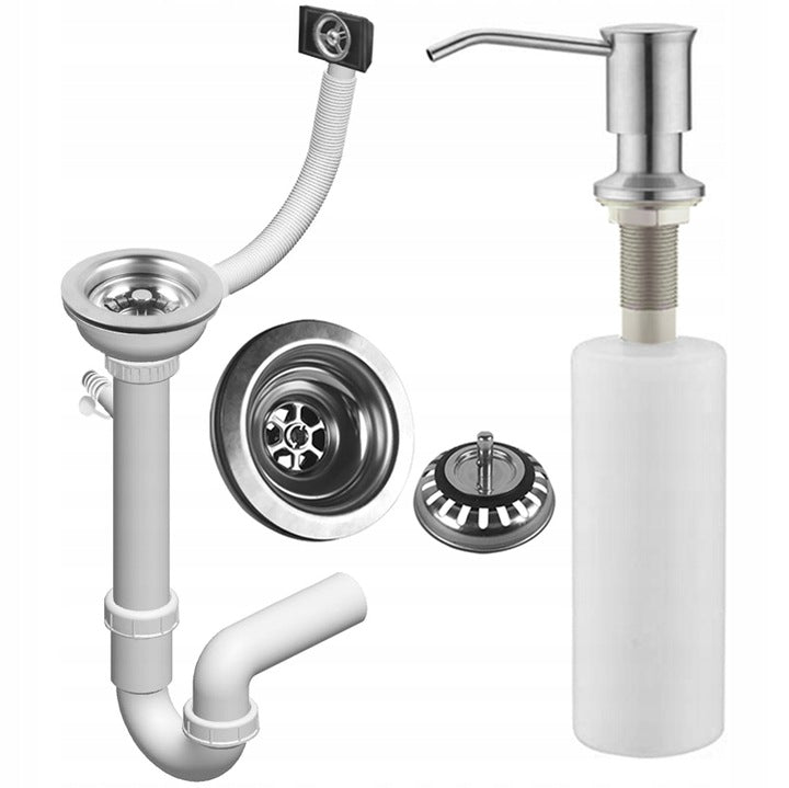 - W komplecie ze zlewozmywakiem: uszczelka, syfon z sitkiem, zaczepy mocujące, bateria kuchenna, dozownik do płynu do naczyń 360 ml