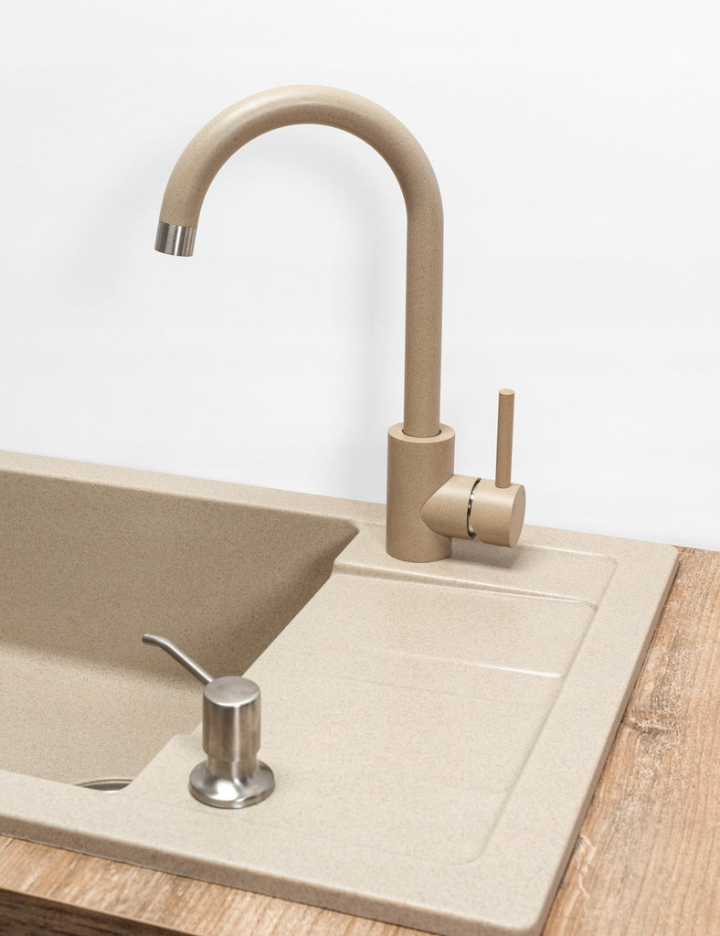 Dzięki wyselekcjonowanemu materiałowi z którego wykonany został nasz produkt, zlewozmywak jest wysoce odporny na zadrapania i zarysowania. Powierzchnia nie wchodzi w reakcję ze standardowymi środkami czystości, a jej wykończenie gwarantuje łatwe utrzymanie czystości. Ponadczasowy design doskonale wpisze się we współczesne kuchenne rozwiązania sanitarne, a zastosowana kolorystyka w perfekcyjny sposób odnajdzie się w nowoczesnych rozwiązaniach projektantów.