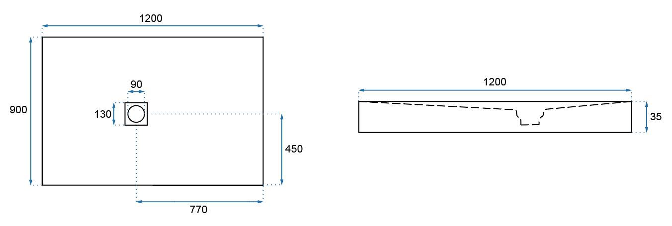 - Umiejscowienie odpływu: przy krótszym boku na środku