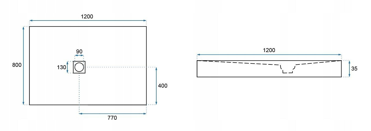 - Umiejscowienie odpływu: na środku