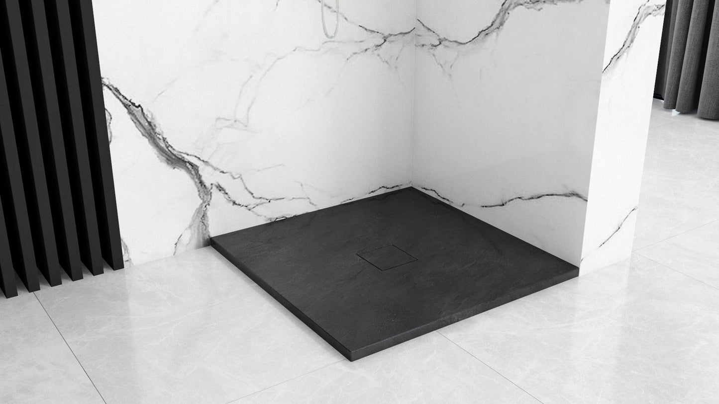 Brodzik REA STONE 90x90 czarny prysznicowy kamienny