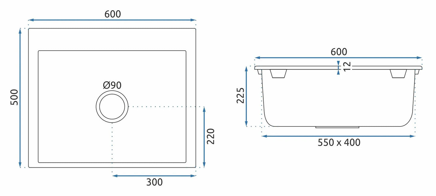 - Głębokość komory zlewozmywaka (mm): 225 mm