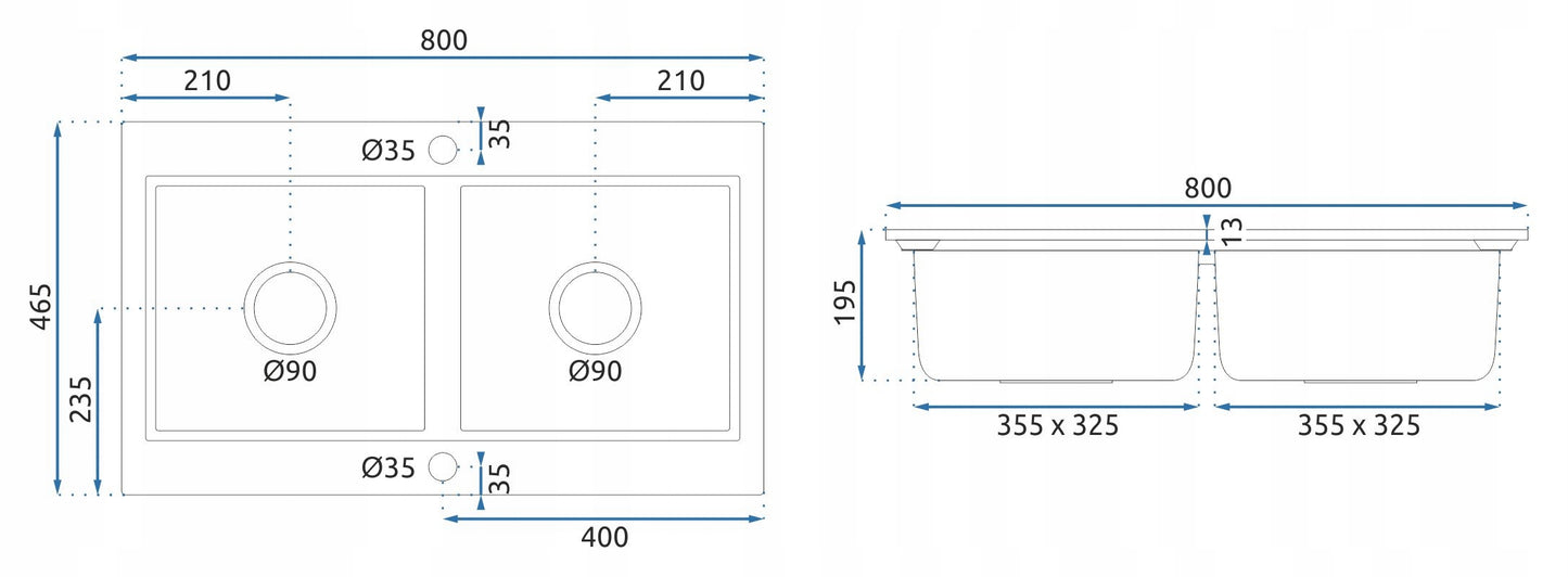 - Głębokość komory zlewozmywaka (mm): 195 mm