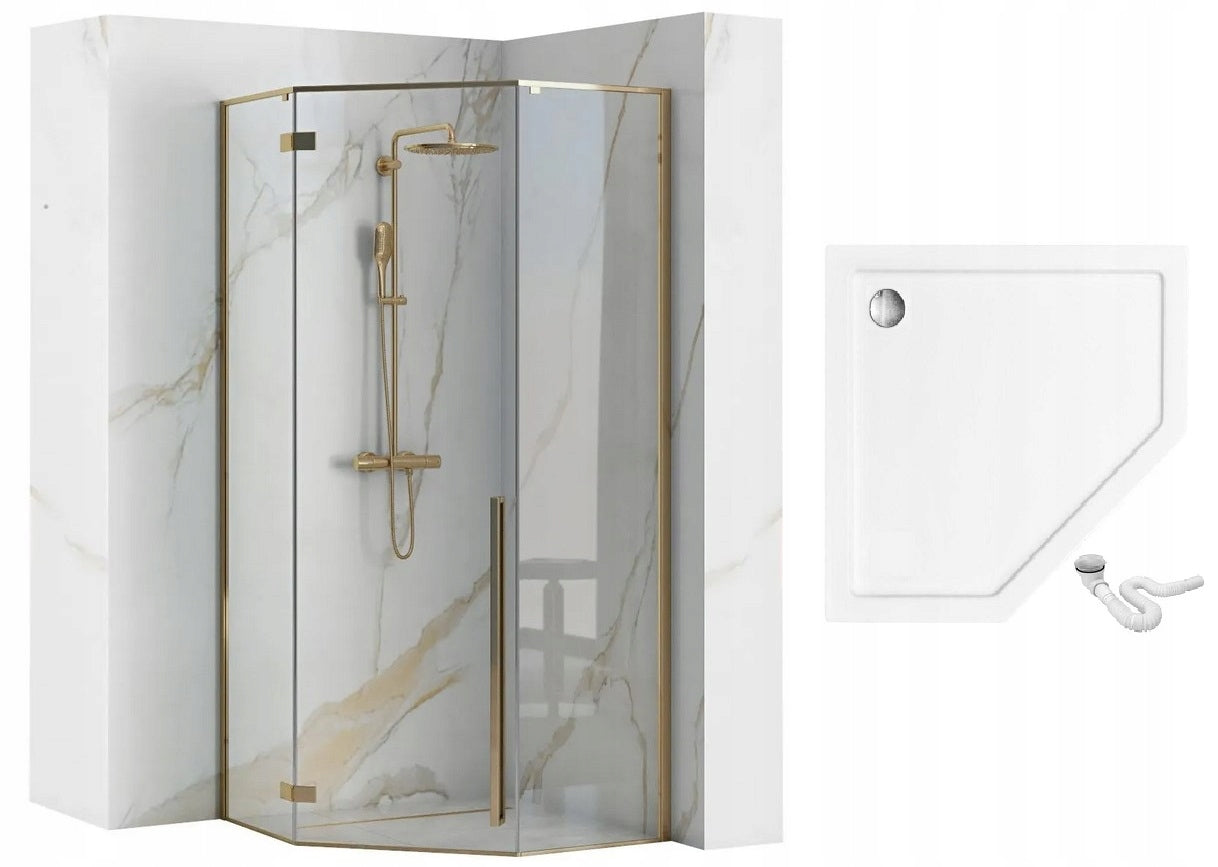 Kabina DIAMOND 90x90 złota prysznicowa + brodzik