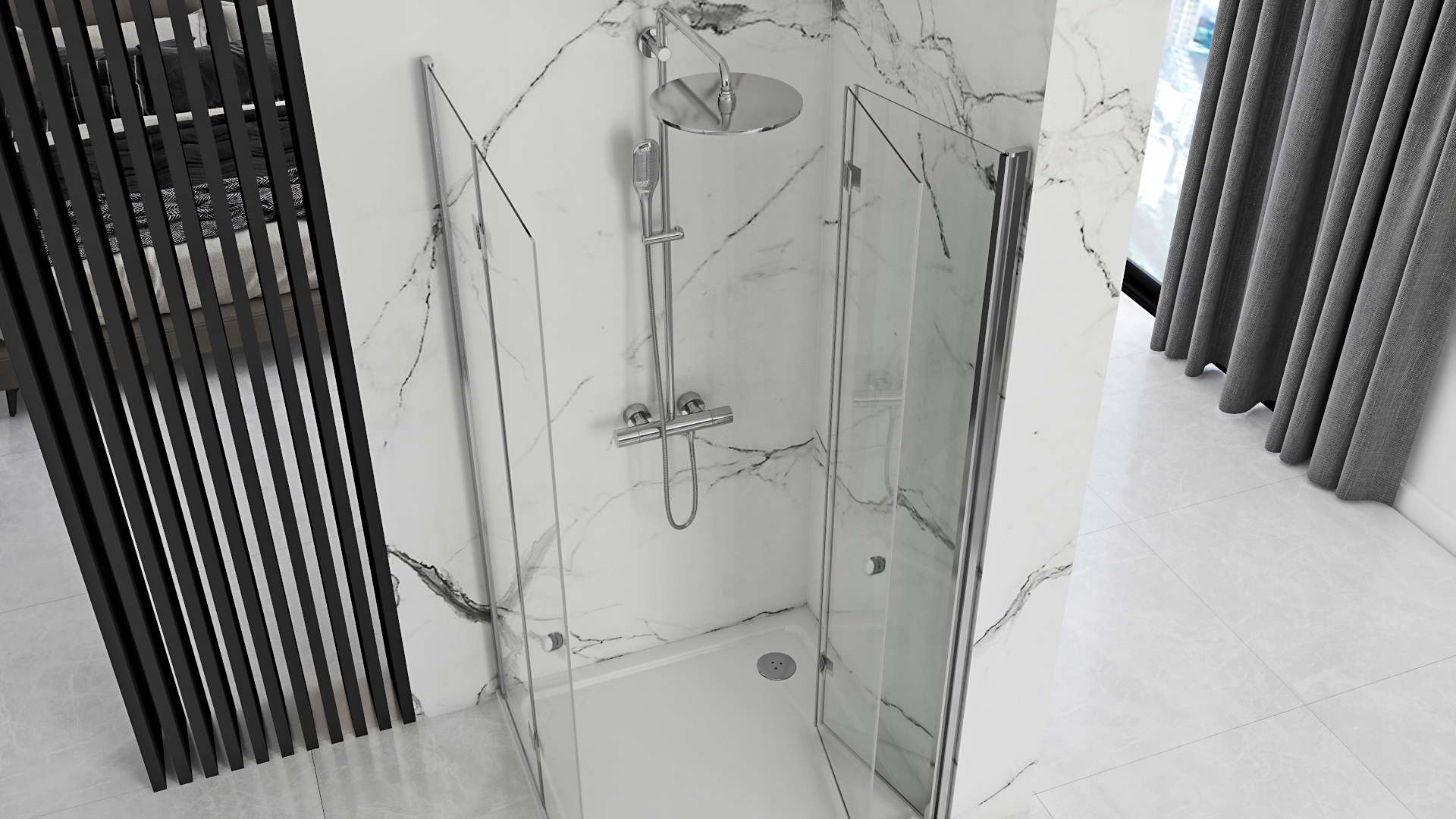 Kabina została stworzona z myślą o nowoczesnych łazienkach, które łączą estetyczne wykonanie z niezwykłą funkcjonalnością. Kabina prysznicowy FOLD, składa się z dwojga składanych drzwi szklanych. Każde ze skrzydeł można złożyć na ścianę, zarówno do środka jak i na zewnątrz. Mogą być instalowane zarówno do brodzika, jak i bezpośrednio do płytek. Wykonano go z transparentnego, hartowanego szkła o grubości 6mm z chromowanym wykończeniem, dzięki czemu jest w pełni bezpieczny. Dodatkową zaletą jest powłoka Easy Clean ułatwiająca czyszczenie. Produkt ma nietypowy design, który doskonale prezentuje się w każdej łazience.