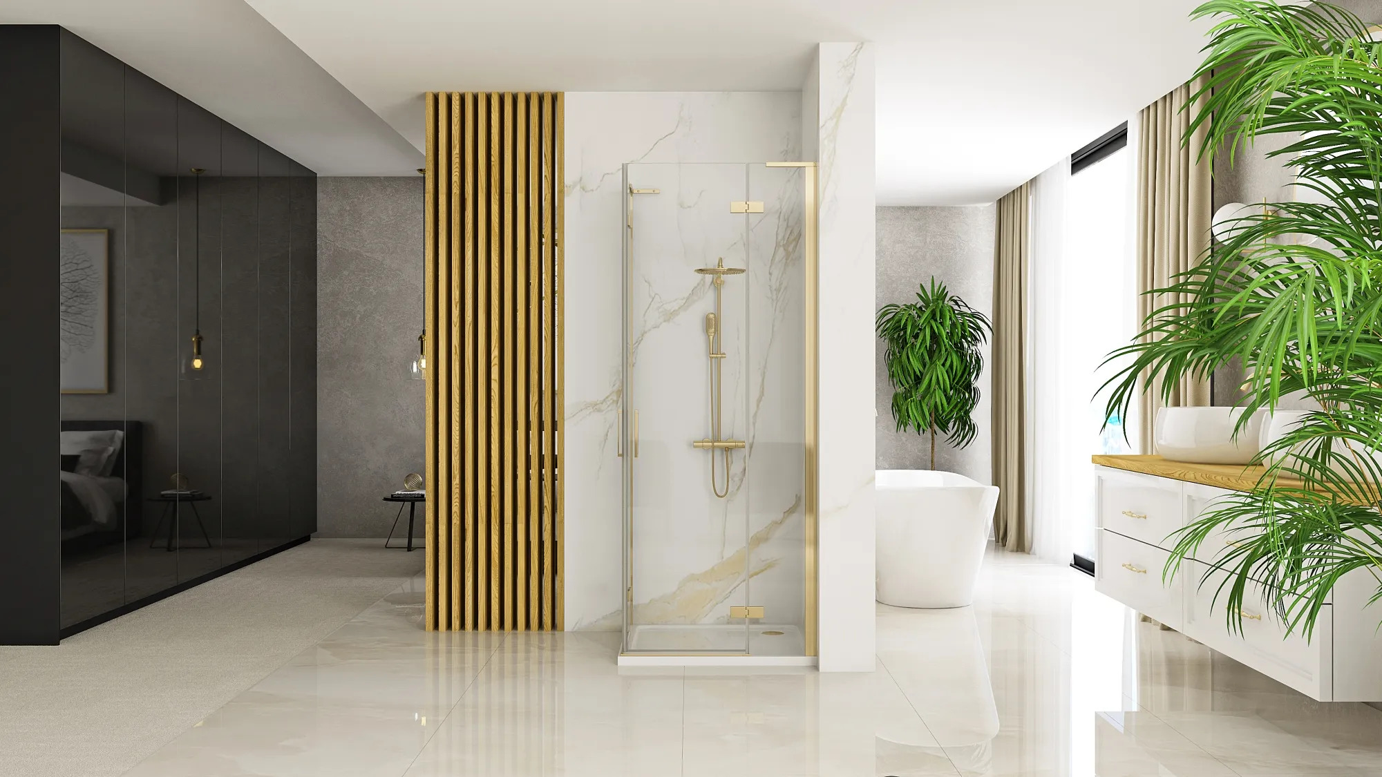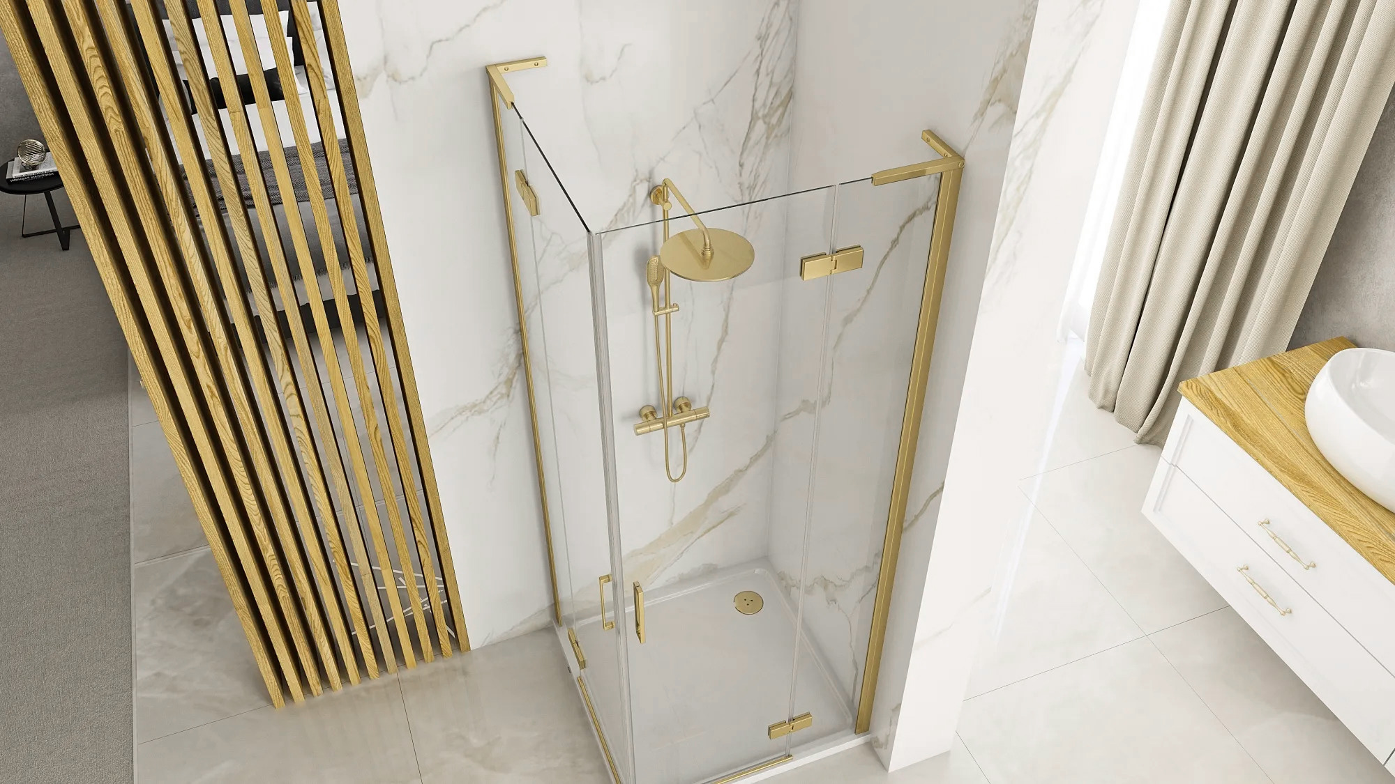 Kabina HUGO DOUBLE 100x90 złota prysznicowa uchylna