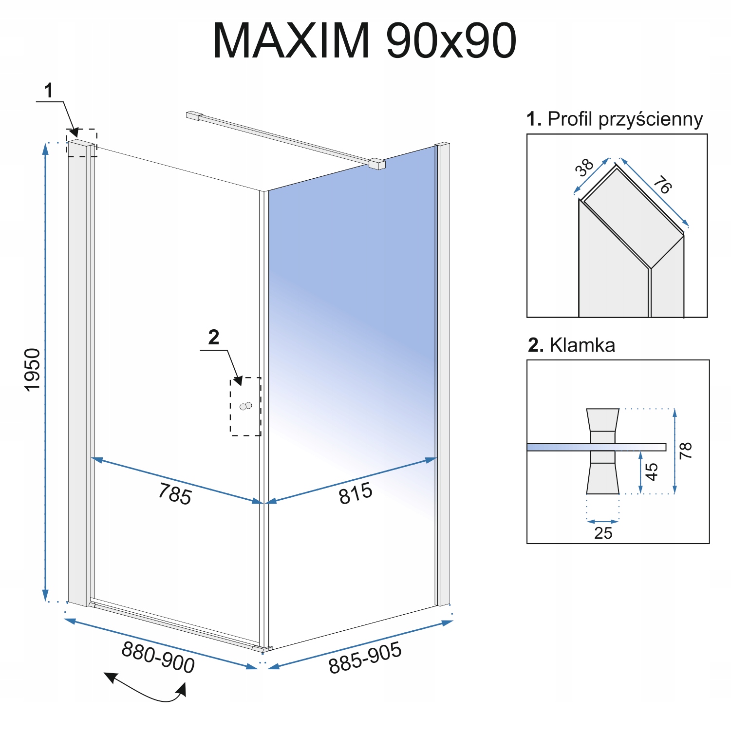 Kabina MAXIM 90x90 L prysznicowa uchylna powłoka