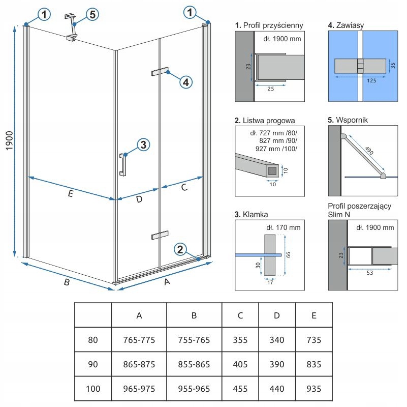 - Wymiary: 80 (drzwi) x 80 (ścianka)
