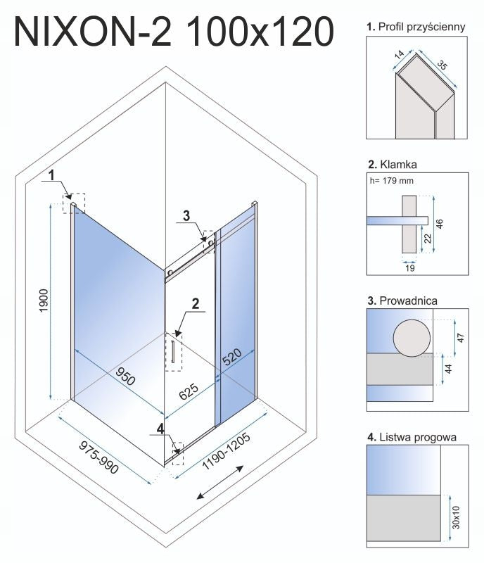 Kabina NIXON 120x100 P prysznicowa przesuwna Rea