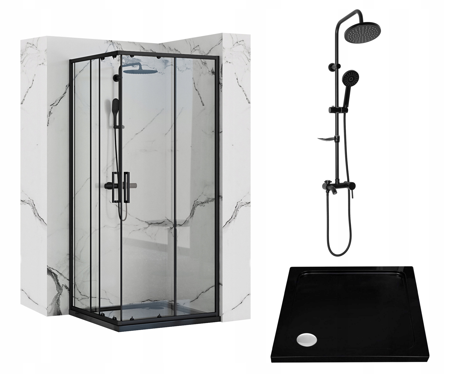 Kabina Punto 80x80 Czarna + brodzik + deszczownica