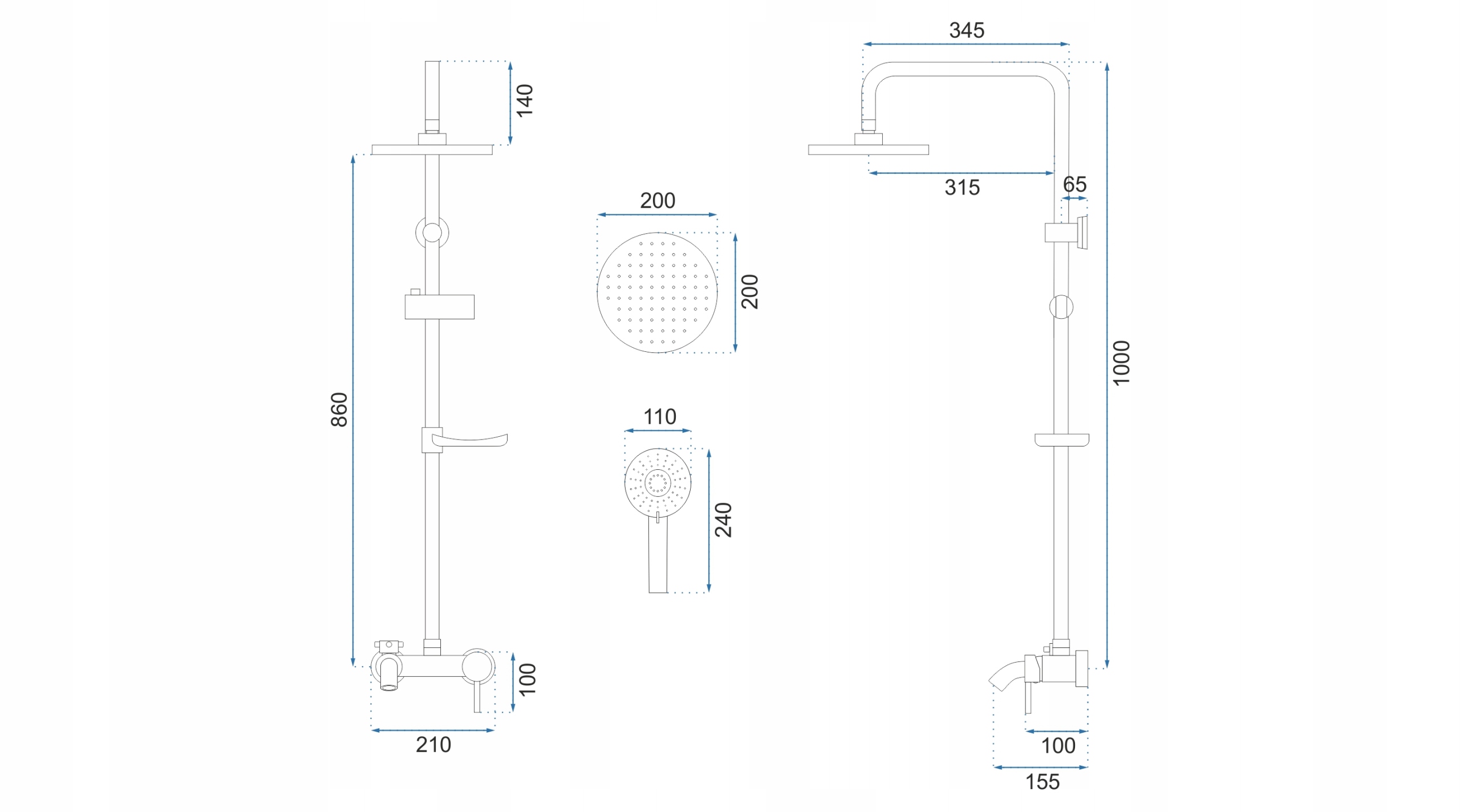 - W zestawie: wylewka dolna, słuchawka ABS, złącze kulowe umożliwiające dowolne ustawienie deszczownicy, półka