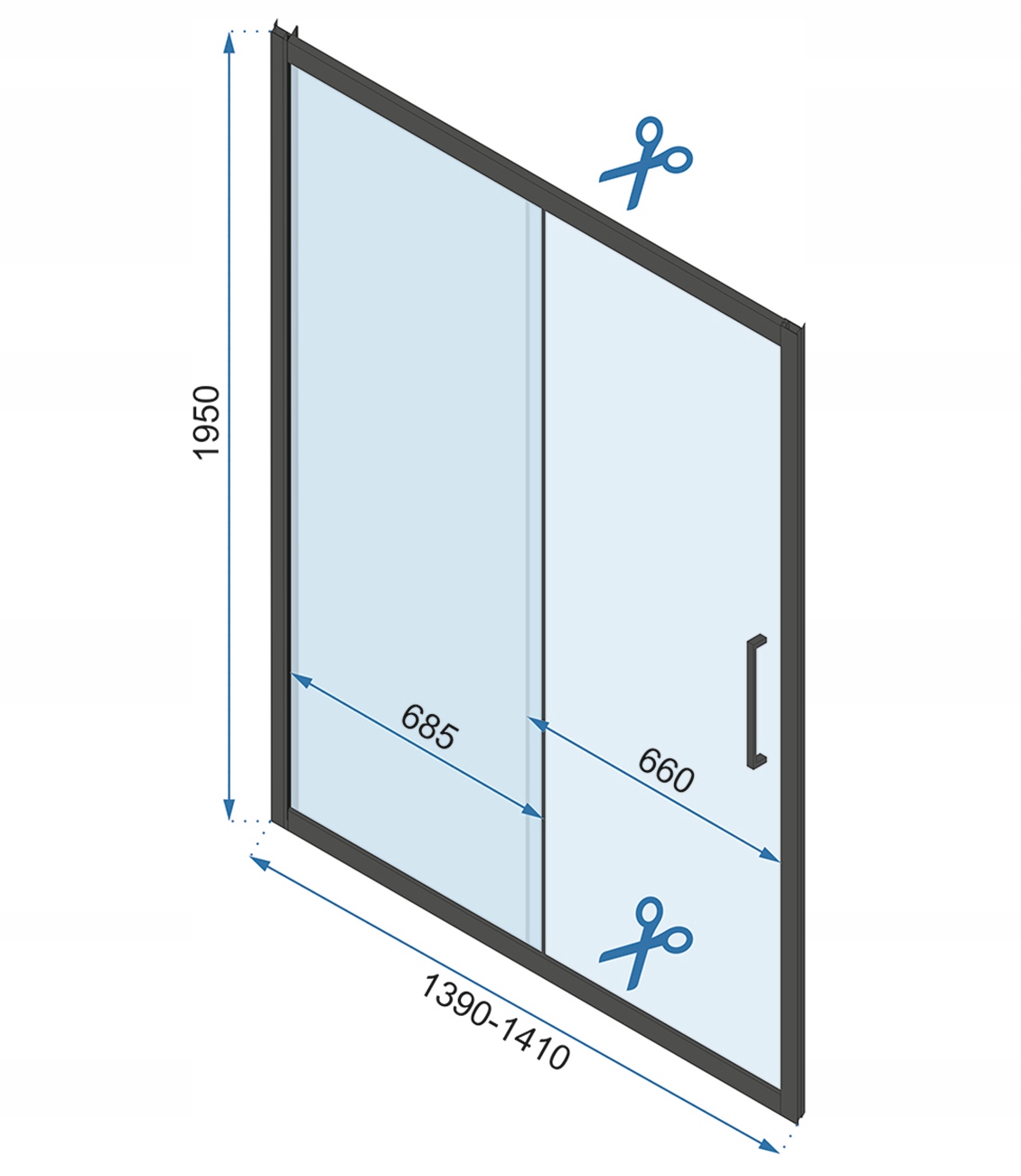 - Rozmiar kabiny: 140 (drzwi) x 100 (2x ścianka)