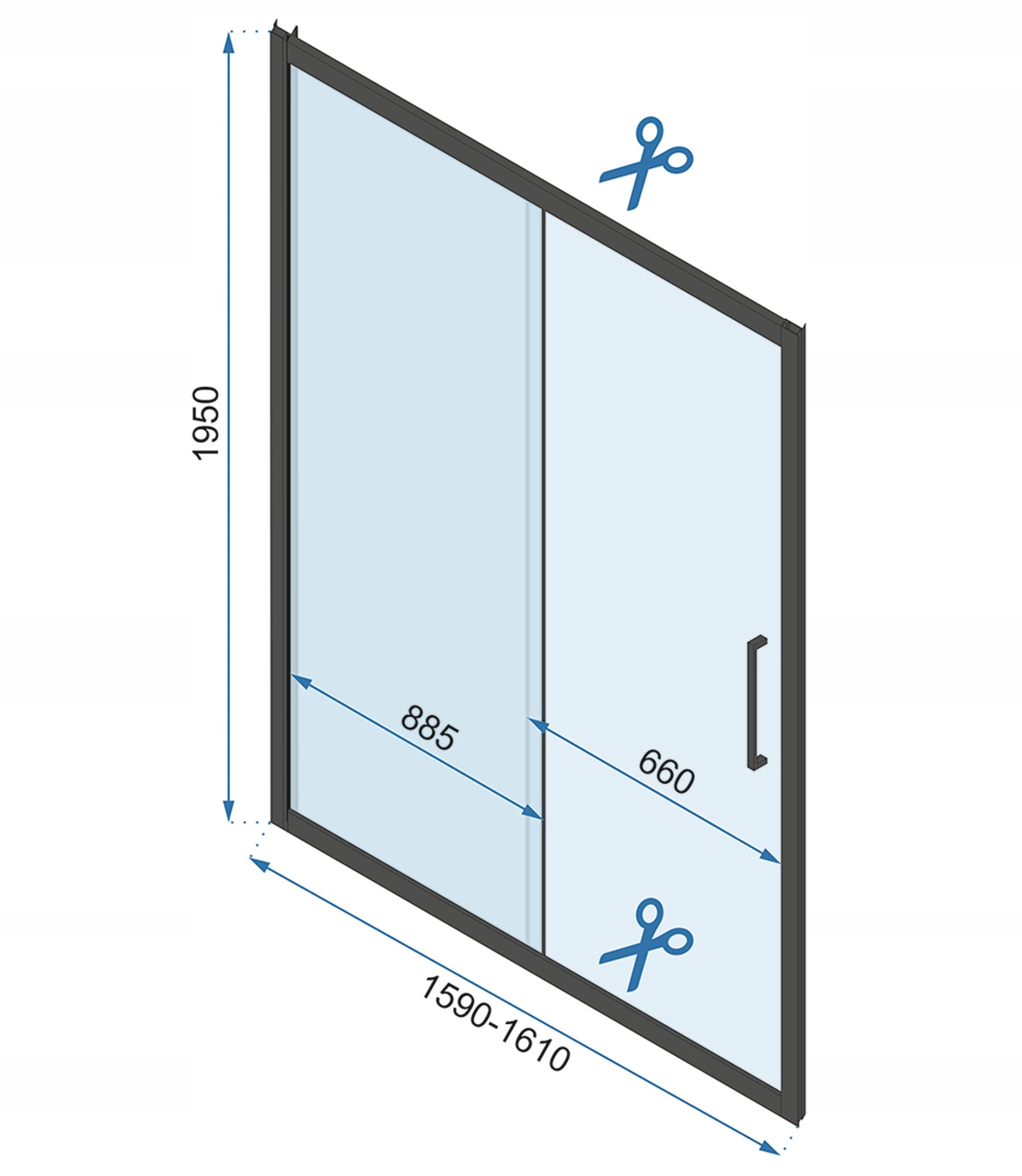 - Rozmiar kabiny: 160 (drzwi) x 100 (ścianka)