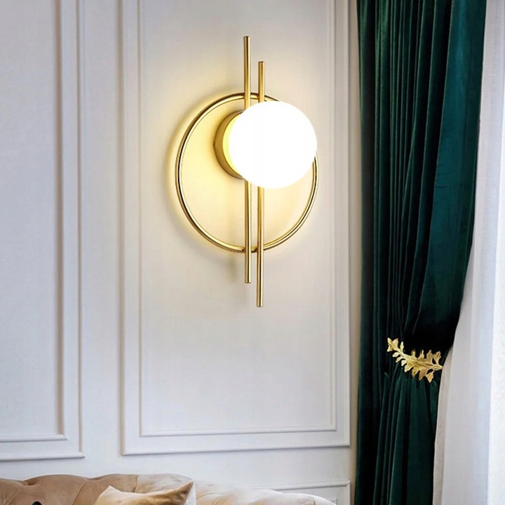 Kinkiet APP1436 złoty lampa ścienna mleczna kula