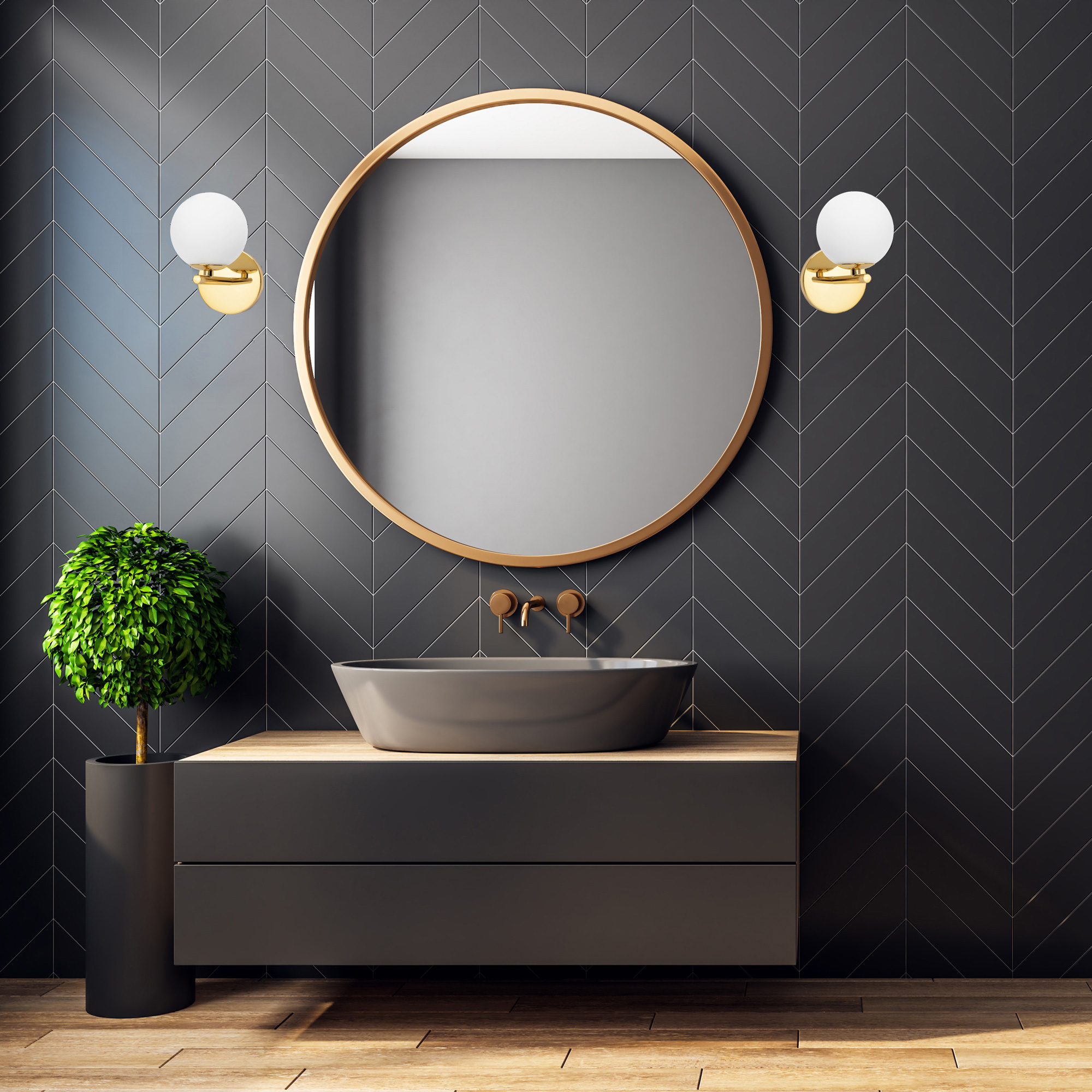 Kinkiet lampa APP684 złota szklana kula mleczna