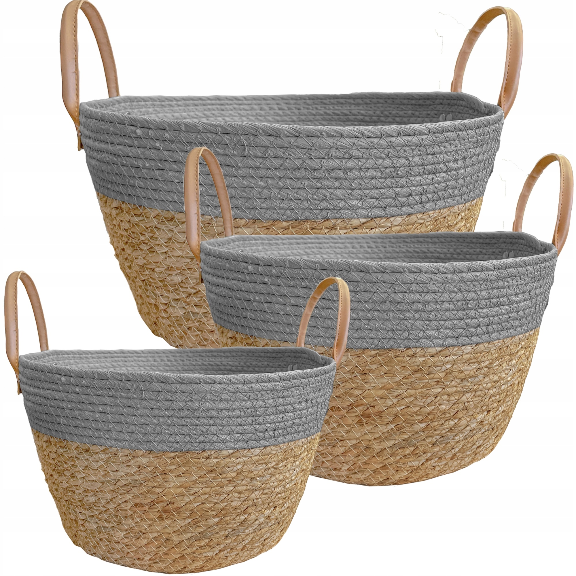 Kosz z trawy pleciony boho osłonka doniczki 3szt