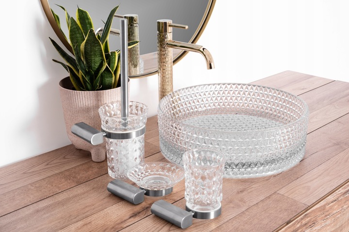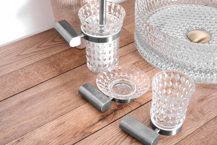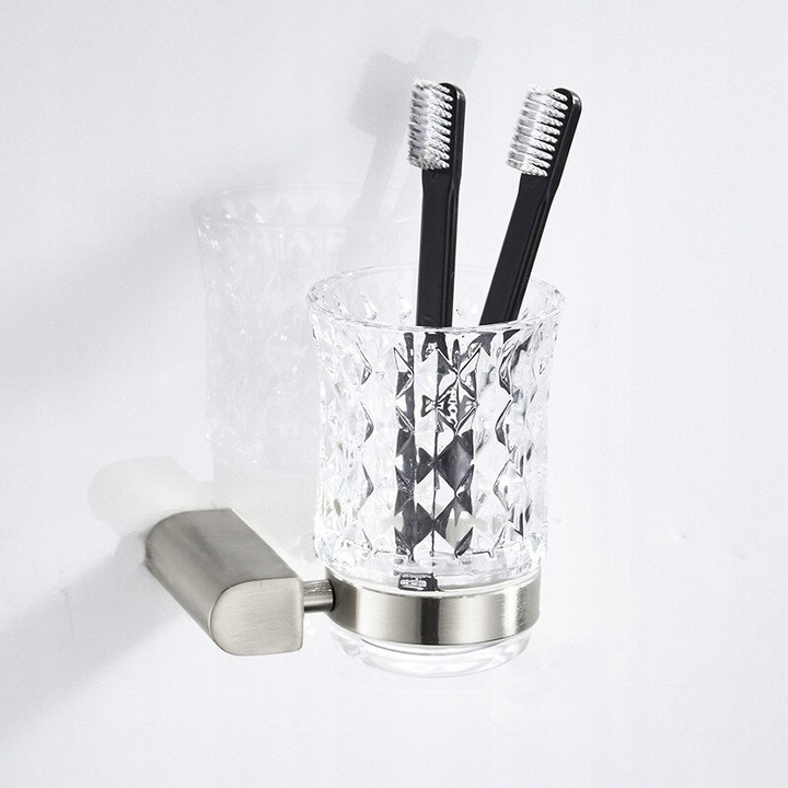 Prezentujemy Państwu elegancki i stylowy uchwyt z kubkiem łazienkowym. Kryształowe wykończenie kubka wyróżnia się ciekawym wzornictwem i designem. Dzięki montażowi na wkręty, kubek można łatwo przymocować do ściany, oszczędzając miejsce do przechowywania i zapewniając, że wszystkie szczoteczki do zębów będą zawsze pod ręką gotowe do użycia.