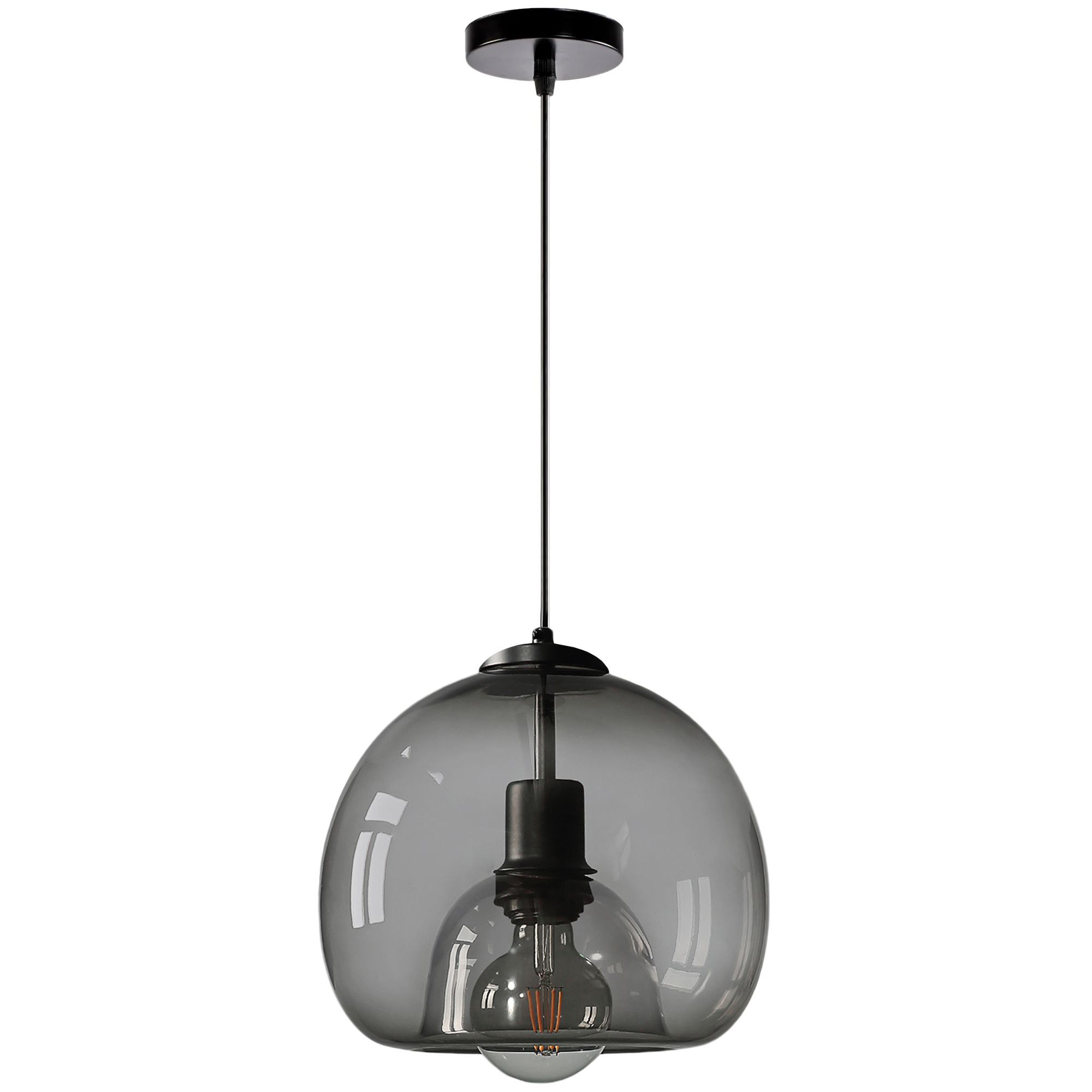 Wyjątkowy wygląd nie wyklucza żadnej aranżacji – prosty styl sprawia, że lampa pasować będzie do każdego typu pomieszczenia, zarówno kuchni, salonu jak i pokoju dziecięcego. Lampa mimo eleganckiego wyglądu doskonale wkomponuje się w każdy inny wystrój. Lampa wykonana jest z metalu i szkła. Szary dymiony klosz o średnicy 25 cm posiada najpopularniejszy gwint E27 .