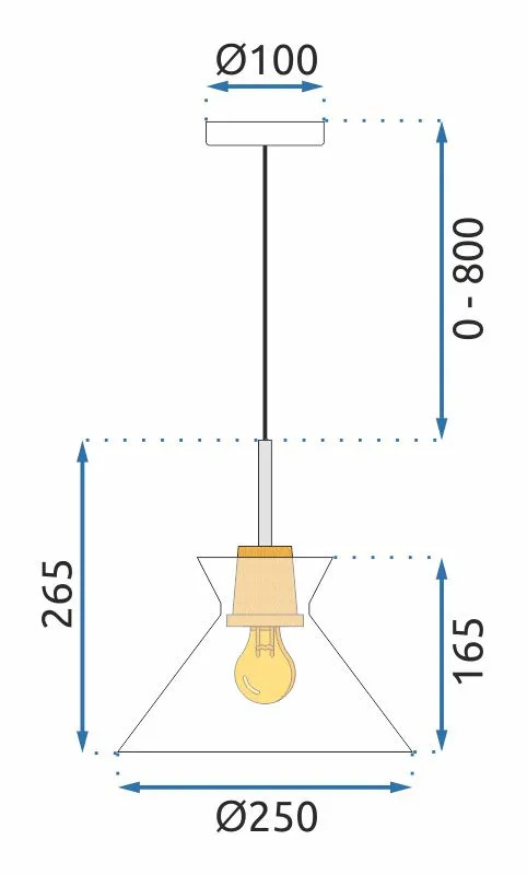 Lampa została wykonana z pięknego szkła w połączeniu z drewnem oraz z metalową maskownica przy suficie. Wyjątkowy kształt doskonale sprawdzi się w każdym pomieszczeniu niezależnie od stylu jego wykończenia. Lampa do samodzielnego montażu. Długość kabla można dopasować odpowiednio do pomieszczenia lub aranżacji.