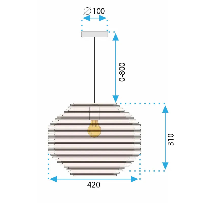 Lampa została wykonana z listewek bambusowych. Do produkcji lampy użyto materiału najlepszego gatunku. Pozwala to na uzyskanie lekkiej konstrukcji oraz idealnej powierzchni, odpornej otarcia czy uszkodzenia mechaniczne. Wyjątkowy kształt doskonale sprawdzi się w każdym pomieszczeniu niezależnie od stylu jego wykończenia.