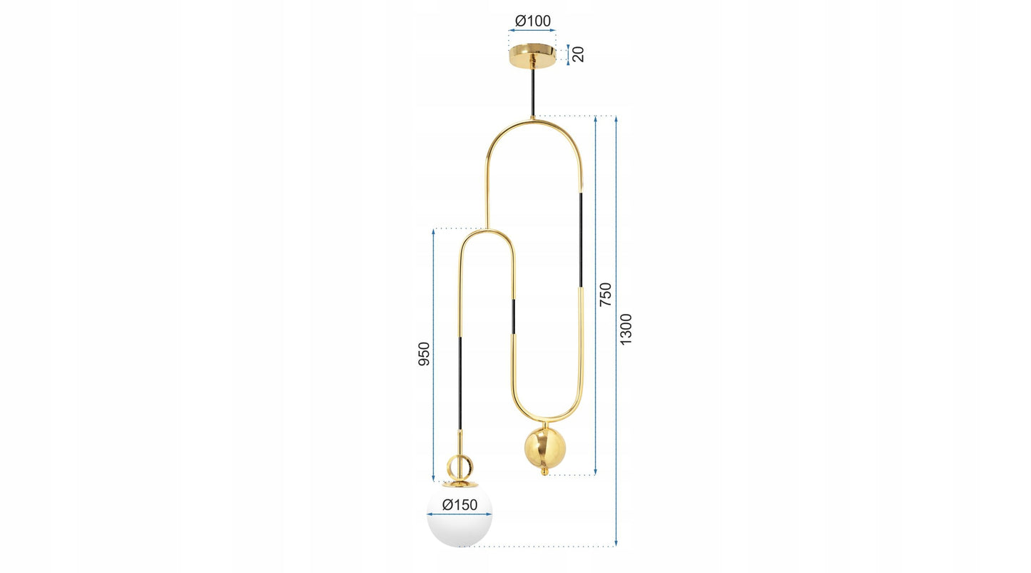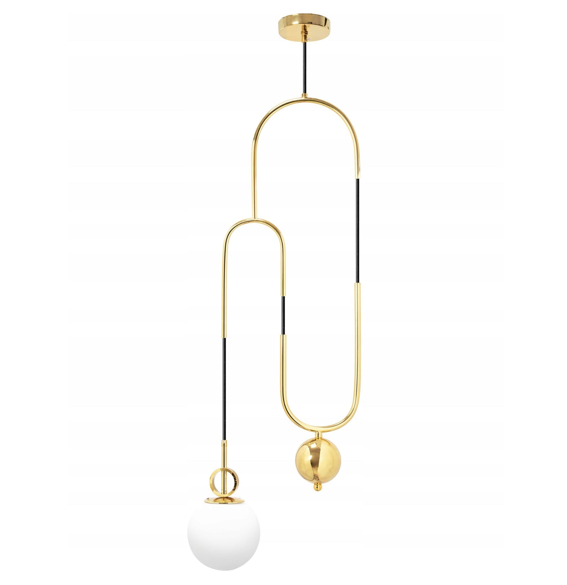 Prezentowana lampa to z pewnością odważny wybór – nie trudno zauważyć, że nasz produkt od razu zwraca na siebie uwagę. Lampa wykonana jest głównie z szkła z metalowym korpusem i maskownicą w kolorze złotym. Długość kabla można dopasować odpowiednio do pomieszczenia bądź aranżacji – wszystko zależy od Państwa wyobraźni.