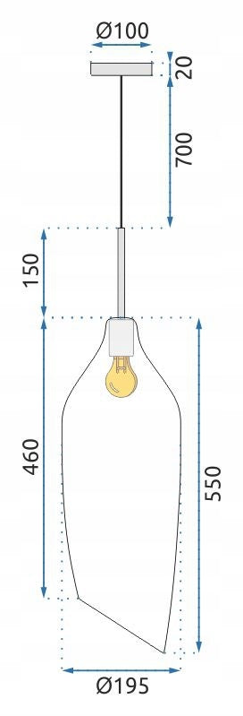 Prezentowana lampa to z pewnością odważny wybór – nie trudno zauważyć, że nasz produkt od razu zwraca na siebie uwagę. Lampa wykonana jest głównie z szkła z metalowym korpusem i maskownicą w kolorze czarnym. Długość kabla można dopasować odpowiednio do pomieszczenia bądź aranżacji – wszystko zależy od Państwa wyobraźni.