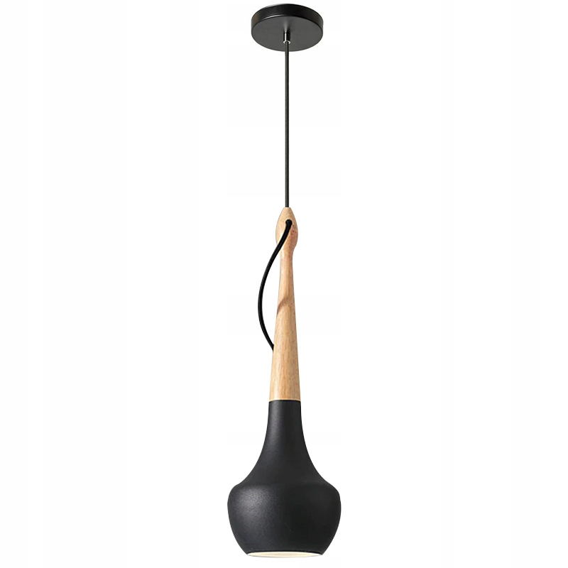 Lampa APP936 czarna sufitowa wisząca metal drewno
