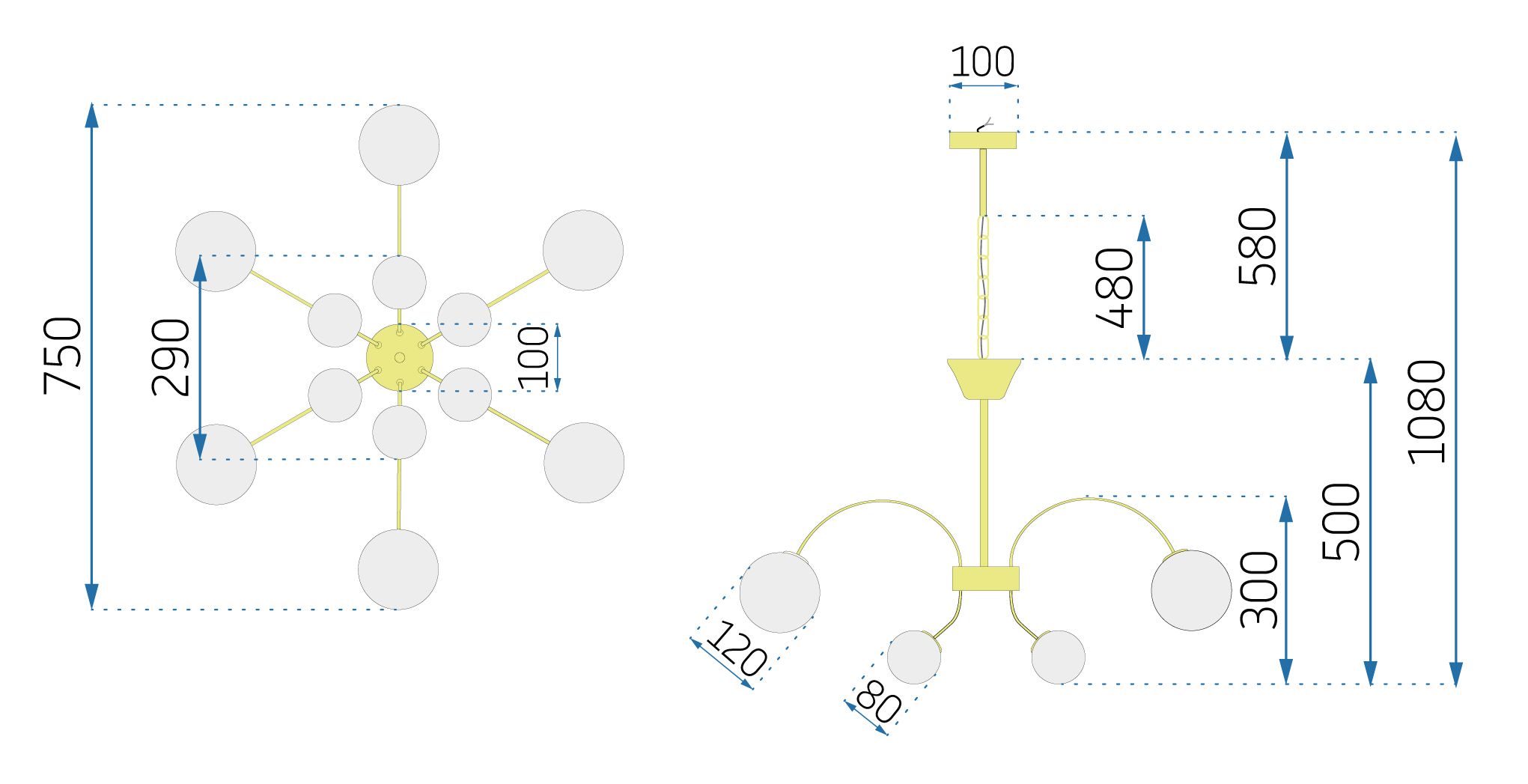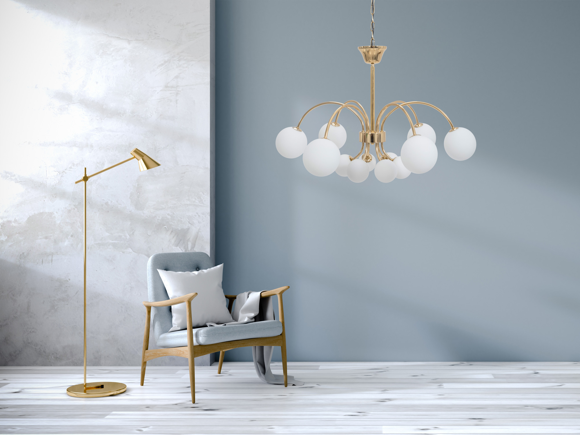 Lampa APP962 sufitowa wisząca kule mleczne złota