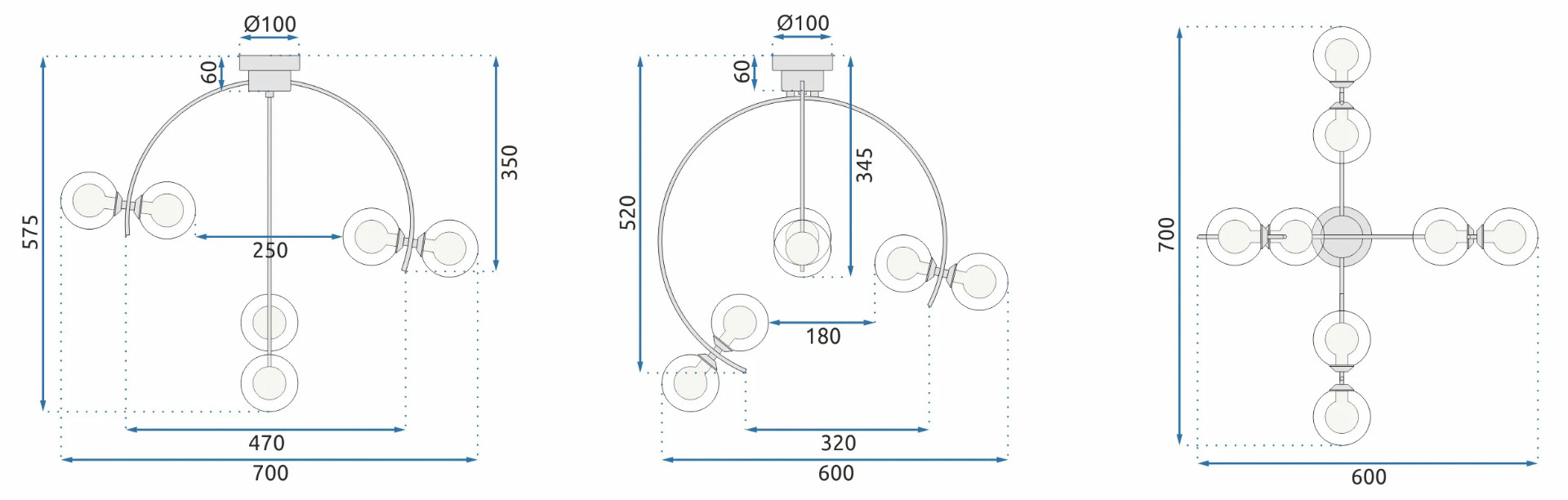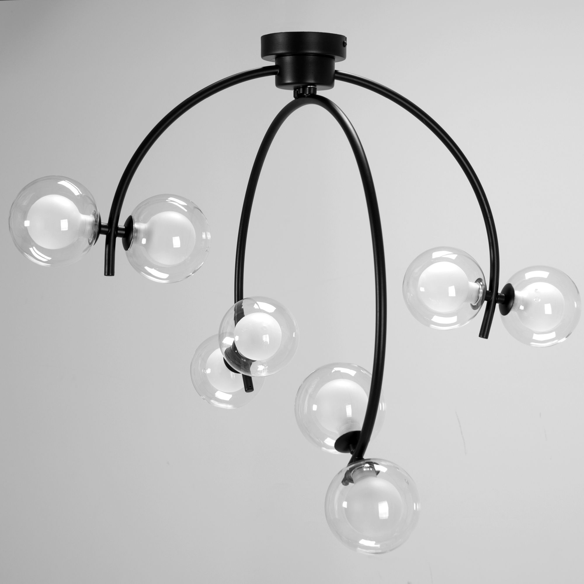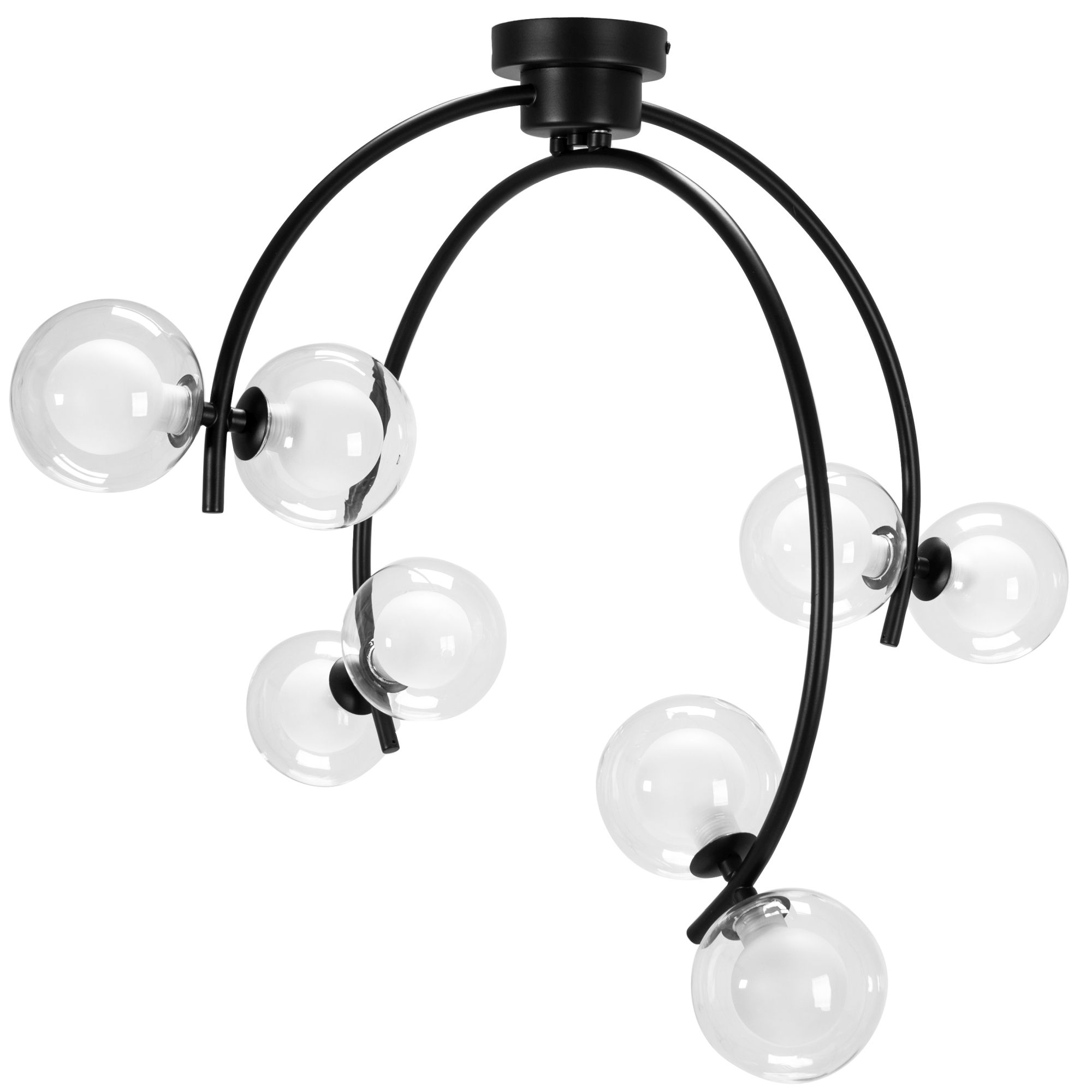 Prezentowana lampa to z pewnością odważny wybór – nie trudno zauważyć, że nasz produkt od razu zwraca na siebie uwagę. Wszystko za sprawą wyjątkowo wielu szklanych kloszy, co za tym idzie, lampa potrafi zasilić aż do 8 punktów światła!