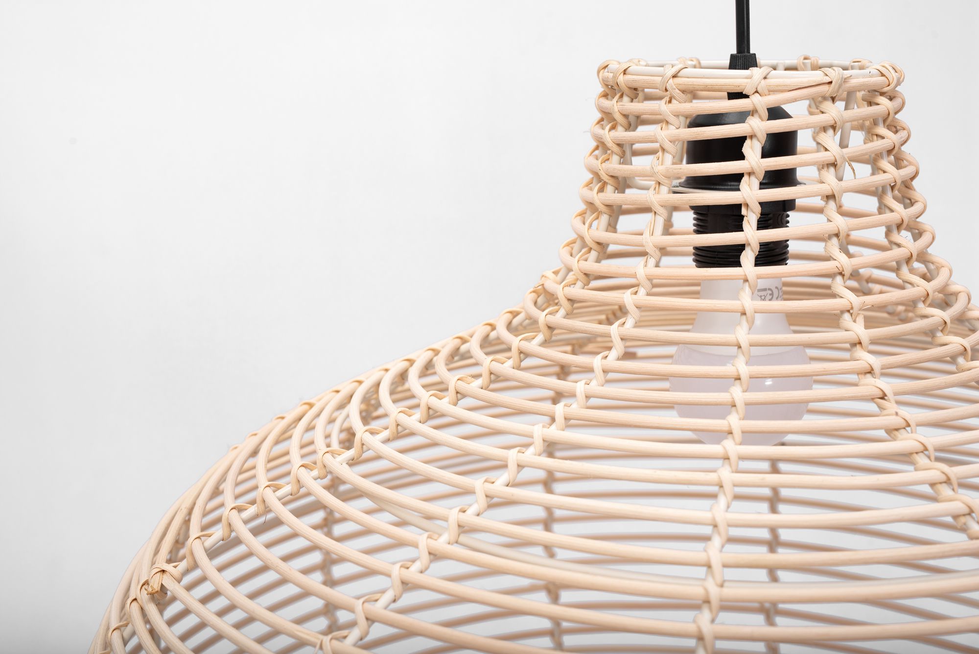 Lampa została wykonana z listewek bambusowych. Do produkcji lampy użyto materiału najlepszego gatunku. Pozwala to na uzyskanie lekkiej konstrukcji oraz idealnej powierzchni, odpornej otarcia czy uszkodzenia mechaniczne. Wyjątkowy kształt doskonale sprawdzi się w każdym pomieszczeniu niezależnie od stylu jego wykończenia.