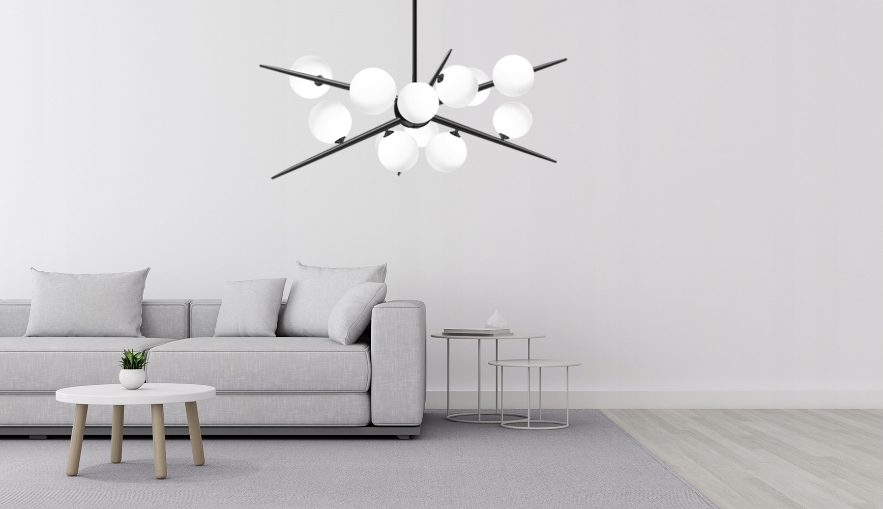 Lampa APP999 czarna sufitowa szklane mleczne kule
