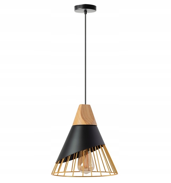 Lampa sufitowa APP224 czarna złota metal +drewno