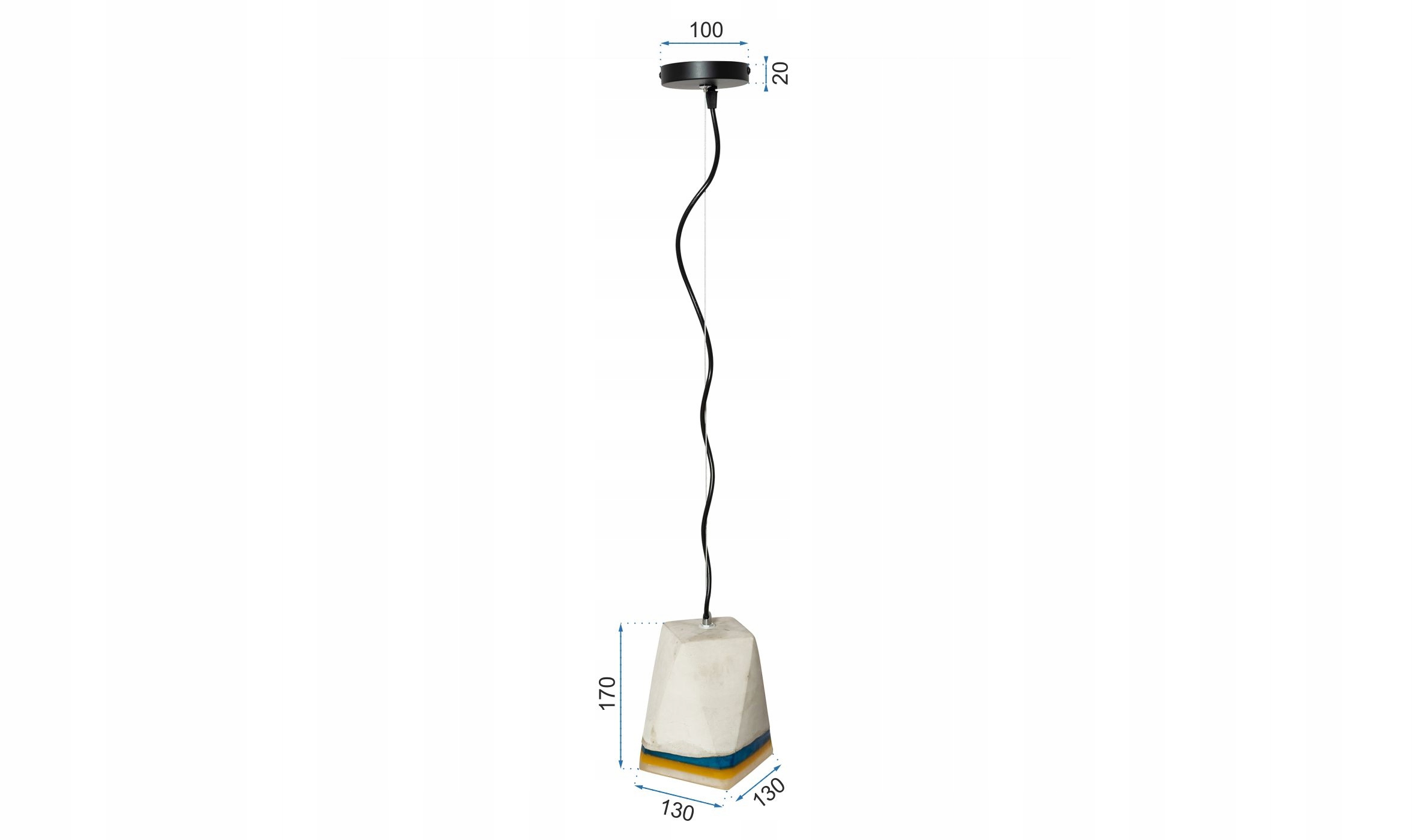 Nowoczesna i klimatyczna oprawa. Lampa została wykonana z betonu a maskownica z metalu. Lampa posiada najpopularniejszy gwint przeznaczony do żarówki E27. Długość kabla można dopasować odpowiednio do pomieszczenia lub aranżacji. Żarówka nie wchodzi w skład zestawu.