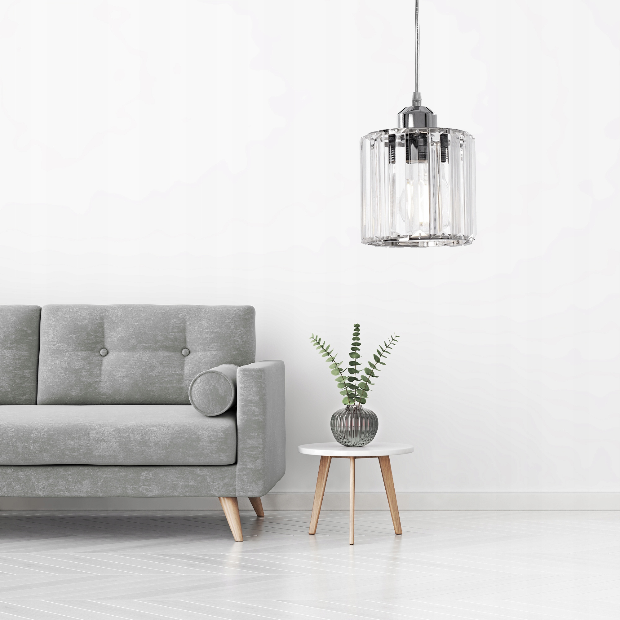 Lampa sufitowa szklana APP508 srebrna kryształowa