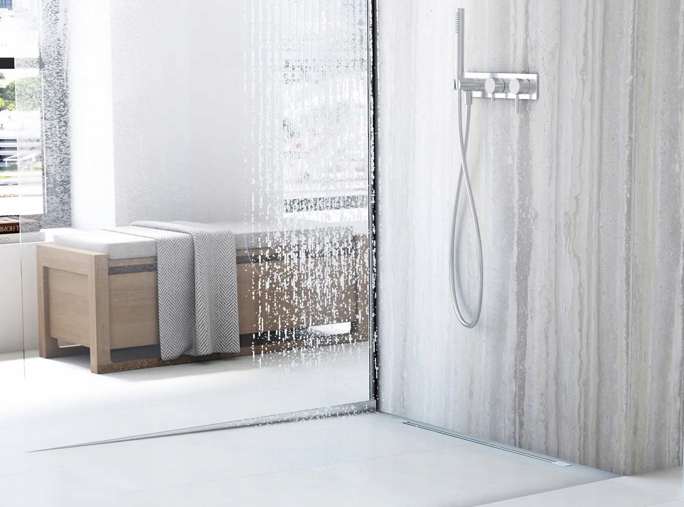 Listwa brodzikowa spadkowa jest idealnym uzupełnieniem przy montażu odpływu z jednostronnym spadkiem. Jej głównym zadaniem jest maskowanie nieestetycznych krawędzi płytek w prysznicu bez brodzika. Zapewnia skuteczną ochronę przed zalaniem łazienki poprzez skierowanie wody do miejsca, gdzie znajduje się odpływ. Minimalistyczny, nowoczesny design doskonale współgra z różnymi stylami aranżacyjnymi łazienek.