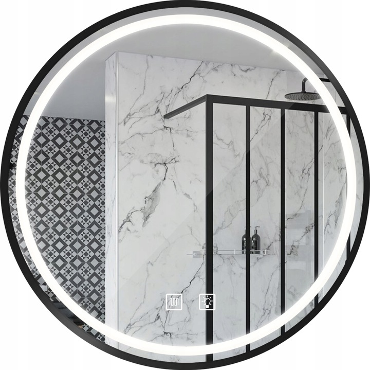 Nowoczesne lustro łazienkowe podświetlane w czarnej ramie z funkcją zmiany barwy światła. Okrągłe lustro z podświetleniem Led to idealna propozycja dla tych którzy cenią sobie wygodę użytkowania oraz nowoczesny design. Lustro jest wykonane z najwyższej jakości materiałów, idealnie się prezentuje oraz jest bardzo wytrzymałe.