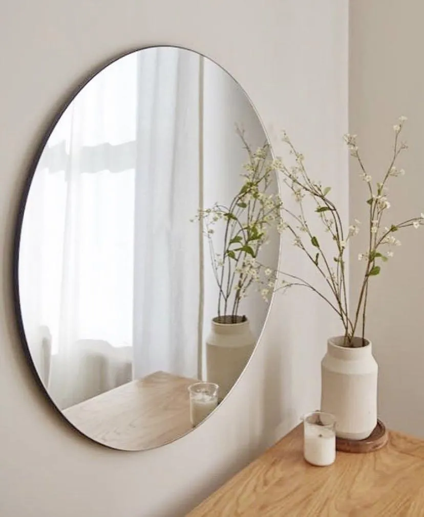 Lustro wykonane z idealnej tafli szkła stanowi idealne dopełnienie wystroju wnętrza, dzięki niemu pokój wydaje się jaśniejszy i większy. Charakterystyczny kształt naszego lustra wpasuje się idealnie do każdego pomieszczenia niezależnie od jego stylu, możesz powiesić je w salonie, sypialni jak i łazience.