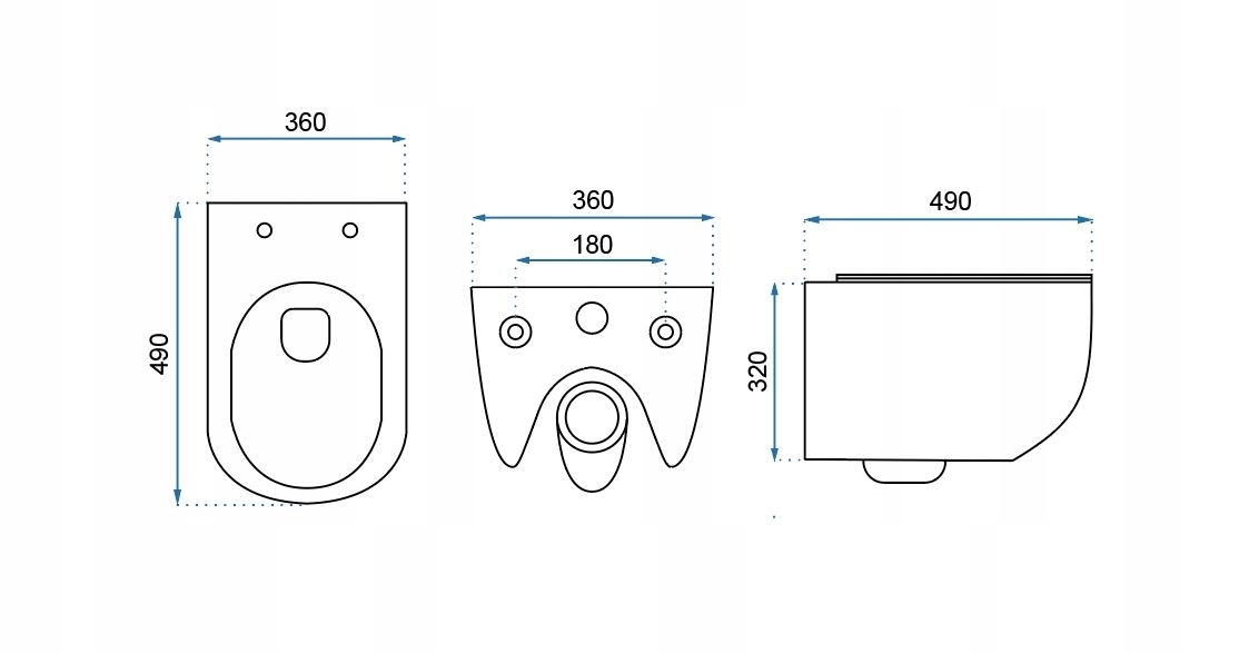 - Typ misy: podwieszana, Rimless-bezrantowa