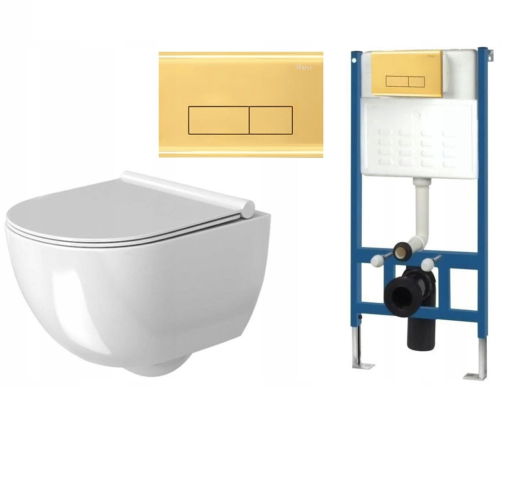 Misa REA WC CARTER rimless + stelaż przycisk złoty H
