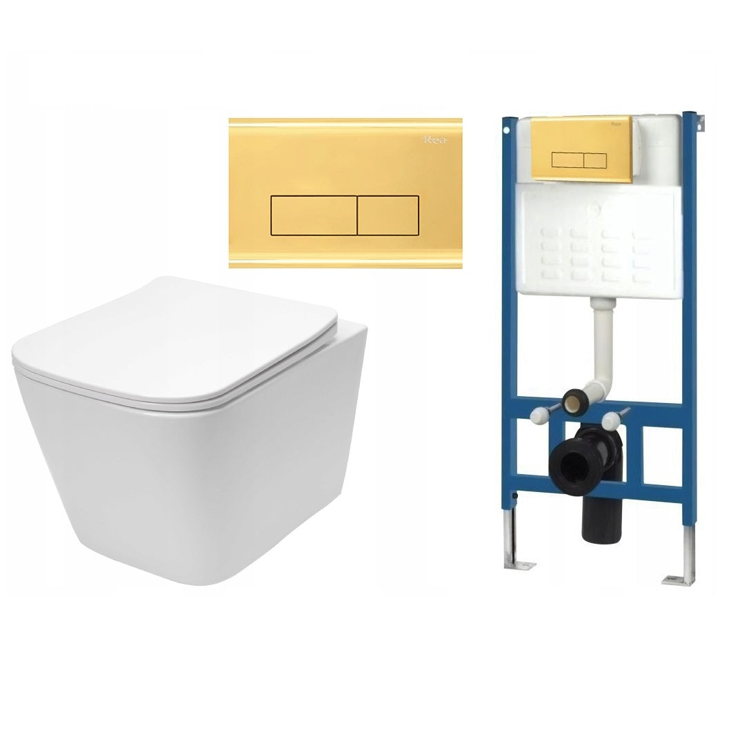 Misa REA WC RAUL bez kołnierza stelaż przycisk złoty H