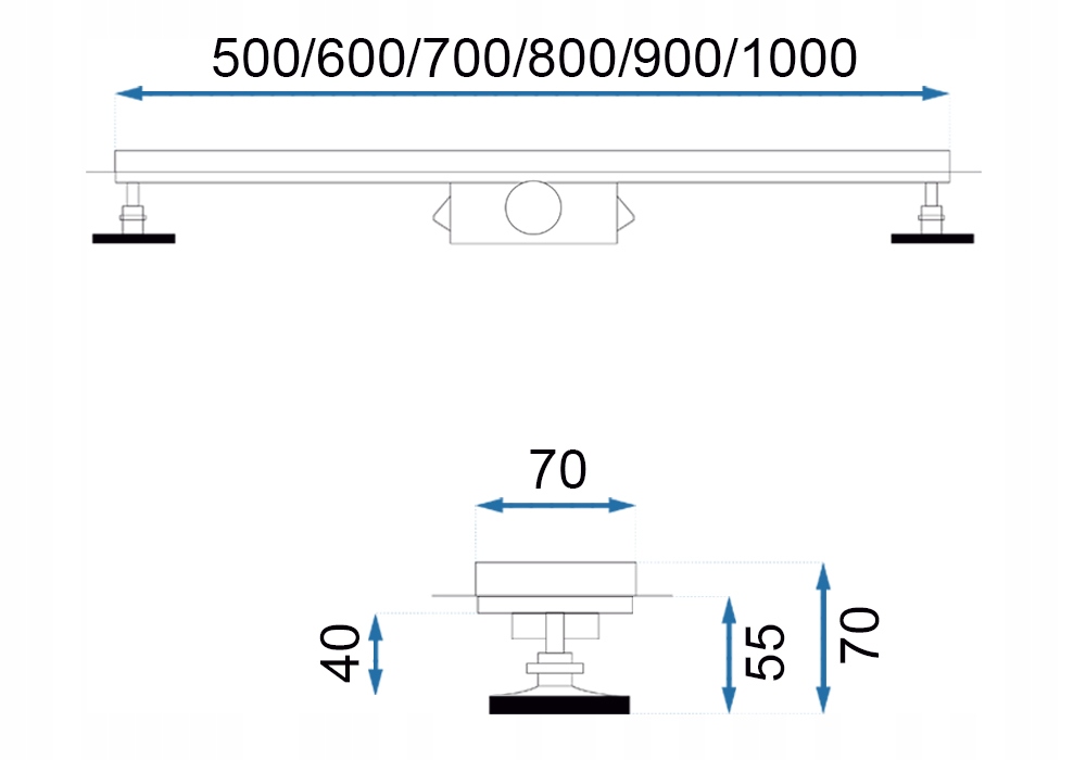 Produkt wyposażony został w komplet składający się z dwóch nóżek poziomujących. Dzięki temu w łatwy sposób można ustabilizować korpus odpływu po jego osadzeniu.
